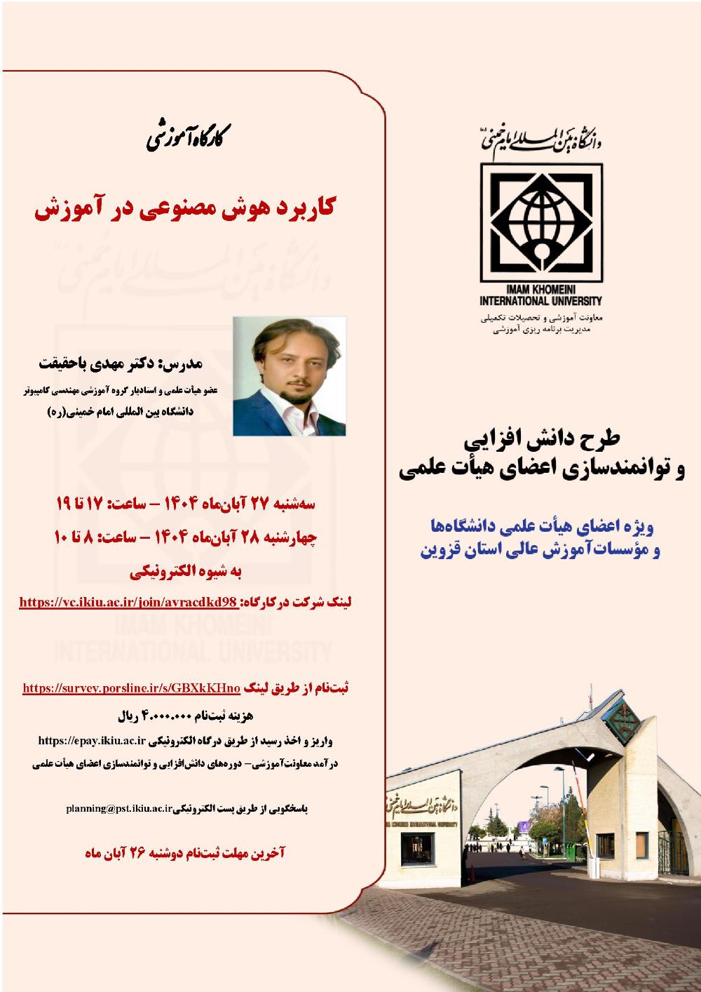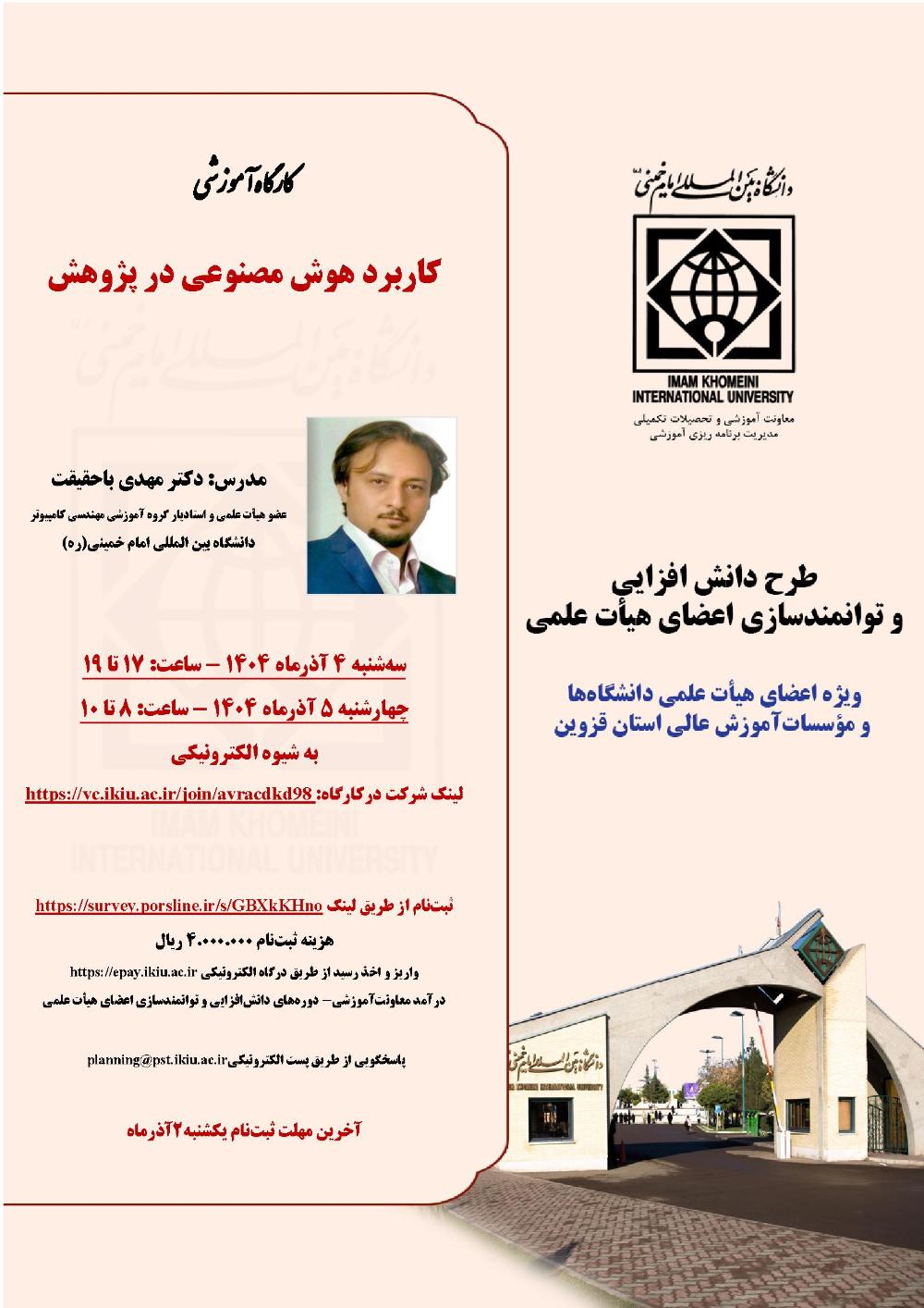 2025 11 05 مقام سومی تیم دانشجویی دانشگاه در مسابقات سازههای دریایی ماکارونی تیم دانشجویی دانشگاه بینالمللی امام خمینی(ره) مستقر در مرکز رشد دانشگاه، در اولین دوره مسابقات ساخت سازههای دریایی ماکارونی، موفق شد رتبه سوم این رقابتها را کسب کند.