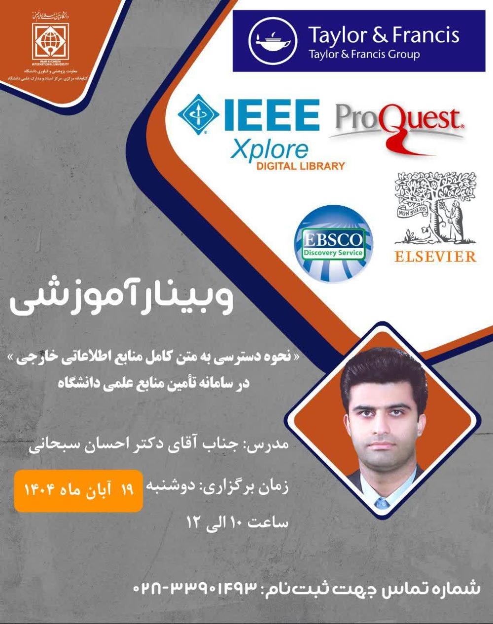 وبینار آموزشی " نحوه دسترسی به متن کامل منابع اطلاعاتی خارجی "